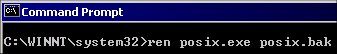 the WINNT\SYSTEM32 directory and type ren posix.exe posix.bak