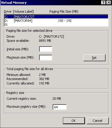 and max of 192 (on a 256MB system). If you get errors after screwing with