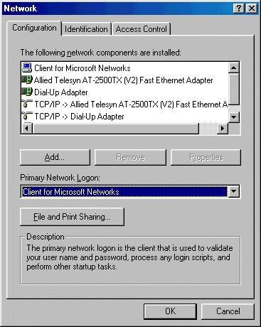 network using Windows 98 Second Edition. Most of the information also applies to similar networks running Windows 95, the original Windows 98, Windows ME and Windows 2000 (the dialog boxes are different in Win2000).